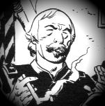Incontriamo il maggiore Eccles nel numero 5 quando deve far fronte alla spinosa faccenda di Whopi. Viene ferito gravemente. incontra la moglie. fa capire a Poe di sapere che c'è un mandato di cattura nei suo confronti e nei confronti di MV si dimostra molto intelligente. Mostra un resoconto preoccupante a Poe su continui episodi di guerra fra indiani e coloni. Rassicurato dal fatto che l'adunata degli indiani è una cermonia religiosa informa Poe delle mosse di Fender a Campbell: gli uomini di Fendere si stanno redimendo e vestono il saio dei frati del convento! |
