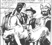 Non potevo permettere che la mia reputazione fosse macchiata da una simile infamia. Io, Zagor e Molnar, che aveva voluto a tutti costi essere presente, ci precipitammo immediatamente al loro inseguimento, buttandoci a capofitto attraverso i boschi, per tagliare la pista che si dipanava in numerosi tornanti. Unica speranza di raggiungerli senza cavalli.